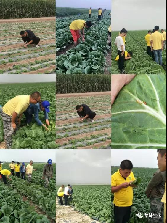团队人员在黑土洼农场和黄羊河农场进行实地学习娃娃菜病虫害及解决方案:烛满克+科攻+奇功套餐,期间给农场种植大户成功推荐翠尊+盾墙(300亩)防治娃娃菜根腐病,零售商秦国莲当场补货奇功、烛满克、科攻、翠尊等产品。