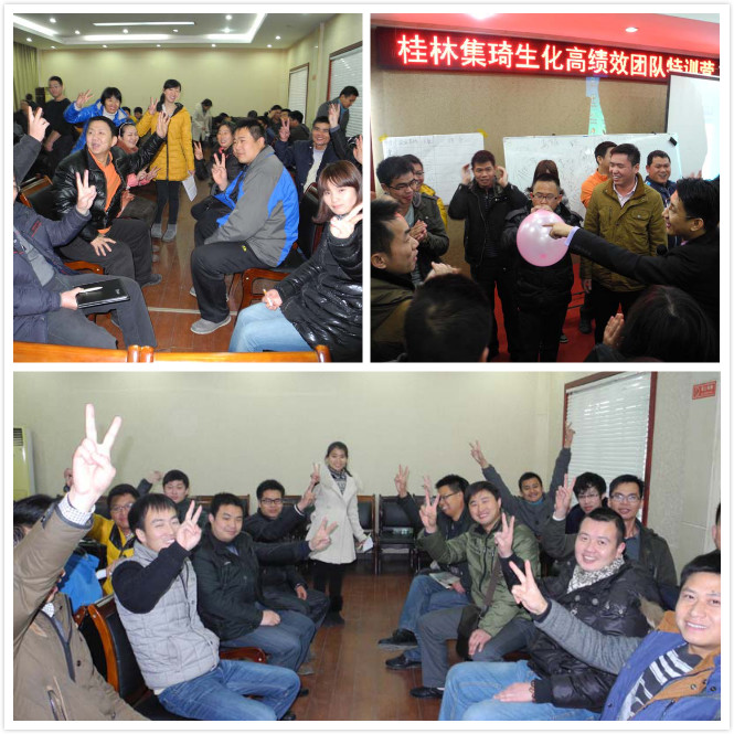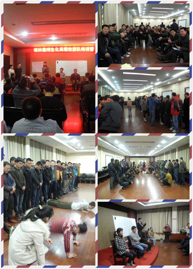 我公司特聘素有“实战派教练先锋”美誉的关艳朋导师在桂林市东江高尔夫休闲度假酒店为公司全体员工进行了为期两天一夜的《中国式团队训练营》特训, 通过讲解和体验式练习,对我们明确个人目标、激发团队意识、感悟团队机能障碍和团队的重要性、确立对团队核心的向心力、消除团队机能障碍都有极大的帮助,每一项体验式练习都有其极深的寓意与目的。